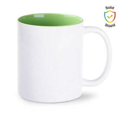 Beliebte Form mit ergonomischem Griff. Sublimationsbecher mit Solid Shield-Beschichtung, die eine Haltbarkeit der Aufdrucke von bis zu 1000 Spülgängen in der Spülmaschine garantiert. Das Modell eignet sich für hochwertige Aufdrucke.