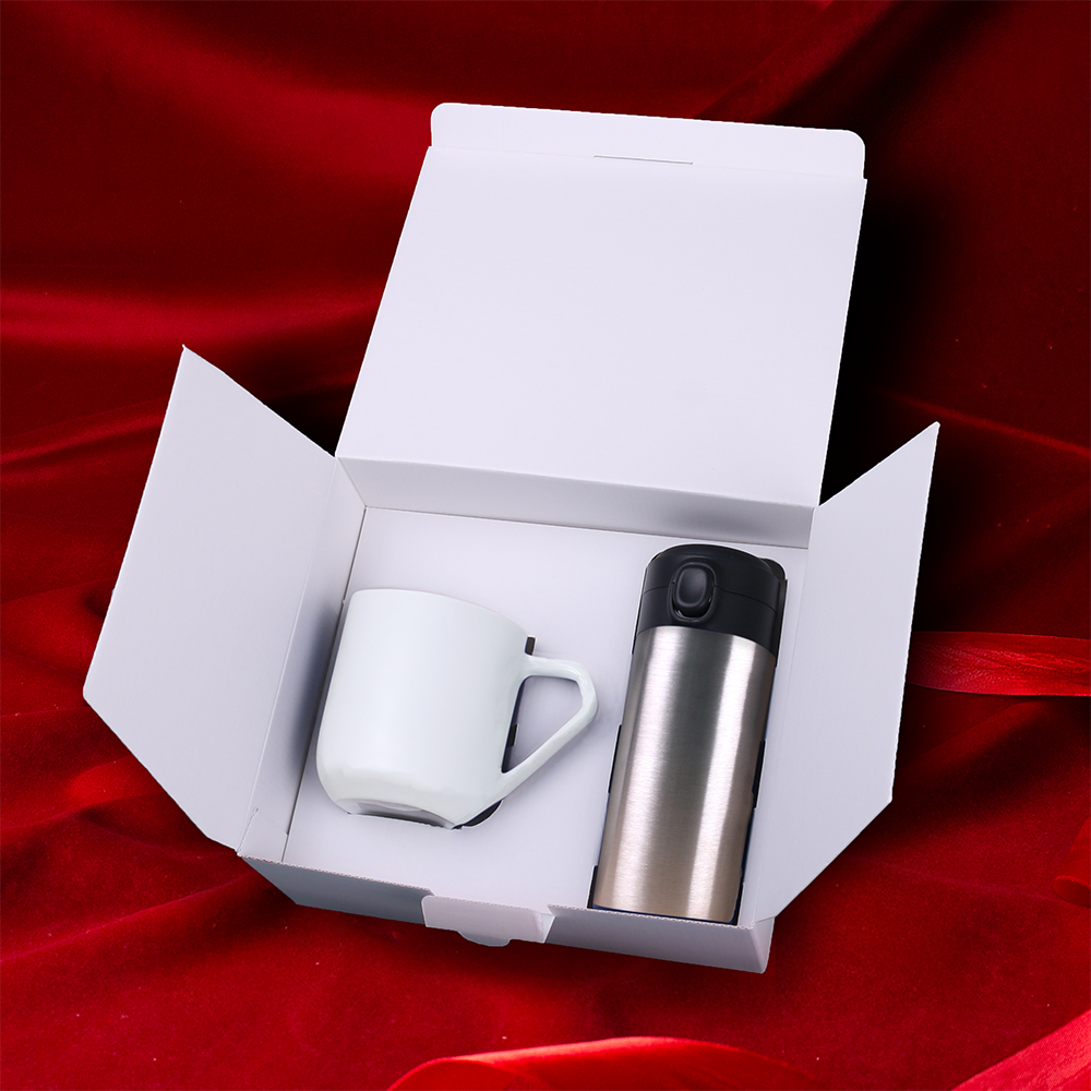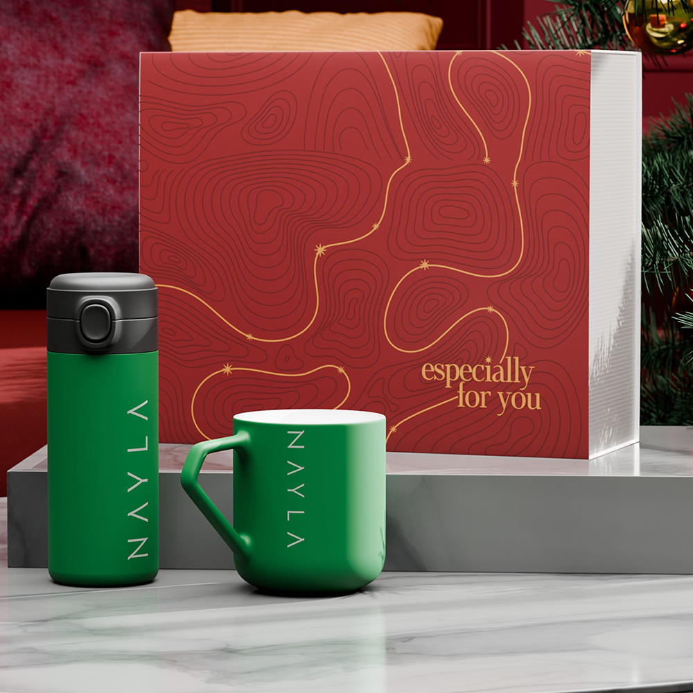 Perfekt für alle Arten von Ausflügen: der individuell gestaltbare Thermobecher Vega im Duo mit dem beeindruckenden Porzellanbecher Impress. Das Set ist in einer speziellen ökologischen Snowy-Verpackung verpackt. Das Ganze wird durch eine elegante, personalisierte Umhüllung ergänzt. DIE ABGEBILDETE VERZIERUNG DIENT NUR ZUR VERANSCHAULICHUNG UND IST NICHT IM PRODUKTPREIS ENTHALTEN. DAS SET IST IN EINER SPEZIELLEN SNOWY-VERPACKUNG MIT DER GEWÄHLTEN