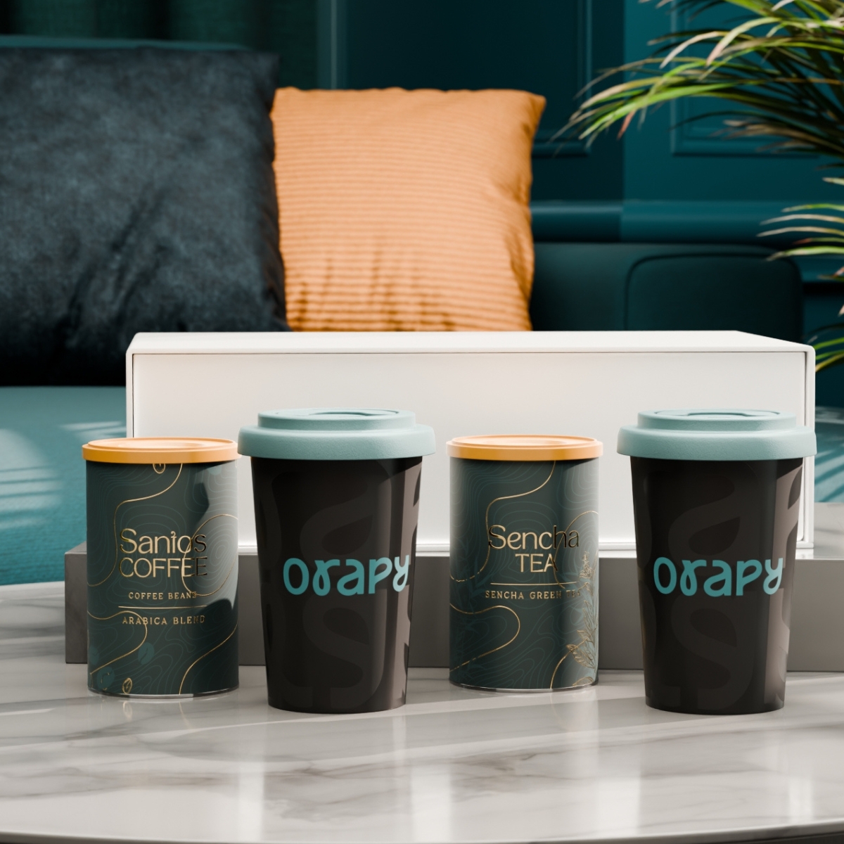 Das Set mit den mobilen Freedom-Bechern verbindet Mobilität mit subtilem Branding. Im Inneren befinden sich außerdem ausgewählter „Santos Coffee“ und „Sencha Tea“ in eleganten Dosen. Das Ganze ist in einer exklusiven, schneeweißen Verpackung mit Magnetverschluss verpackt. Der Deckel ist in folgenden Farben erhältlich: Weiß, Orange 021C, Cool Gray 7, Rot 200C, Marineblau 294C, Braun 4695C, Schwarz, Rosa 4064C, Blau 2144C, Eukalyptus 5493C, Desert Sand 2310C.